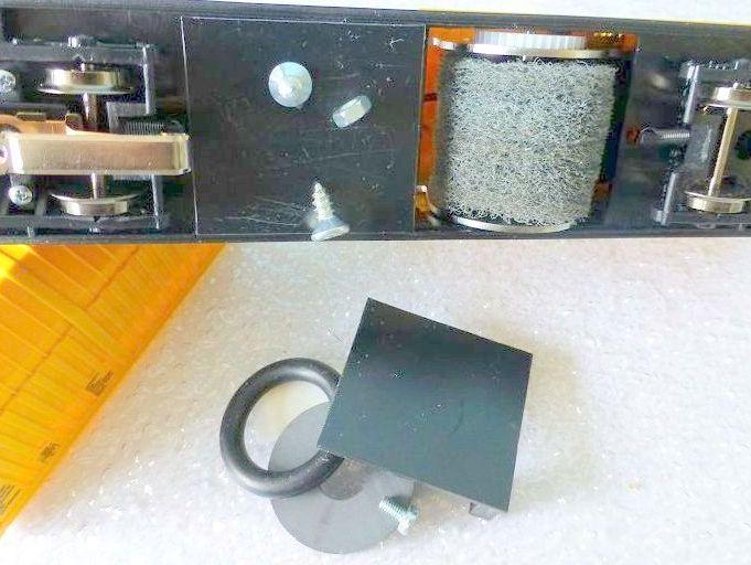 Funktionalität: Der unter einem schraubbaren Kunststoffdeckel geschützt liegende Permanentmagnet wird am Chassis des Fahrzeugs befestigt und zieht während der Fahrt über die Gleisanlage lose, eisenhaltige Metallteile an. Die dem Kunststoffdeckel anhaftenden Metallteile werden z.B. mit einem Borstenpinsel beseitigt.