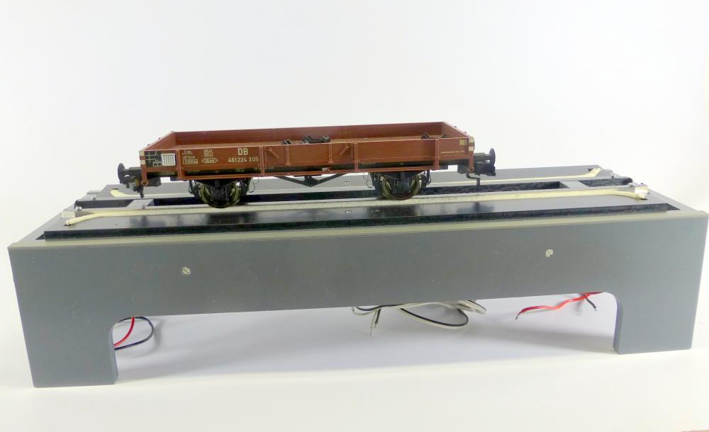 Zur Beseitigung loser Staub- und Schmutzpartikel auf Modellstraßen, die mit dem Faller-Car-Sytem¹ befahren werde, produzieren wir einen Staubsaugerwagen (in Form eines Anhängers, Art.-Nr. 9580). Die losen Schmutzpartikel aus dem Fahrbahnbereich werden aufgesaugt und einem Sammelbehälter zugeführt.