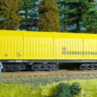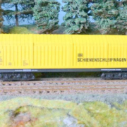Zum Nachrüsten – Ergänzen für den MLR-1 Einsatz und die H0-Schleifwerke bieten wir unseren H0-Maschinenwagen, mit E-Technik, aber ohne Reinigungstechnik, 4achsig, gelb mit schwarzem Chassis, LÜP 185 mm, an.