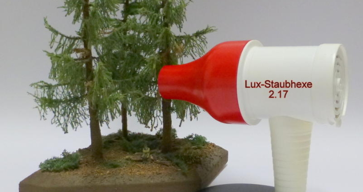 Staubsaug- und -blasgerät zum reinigen verstaubter Modellbahnlandschaften.