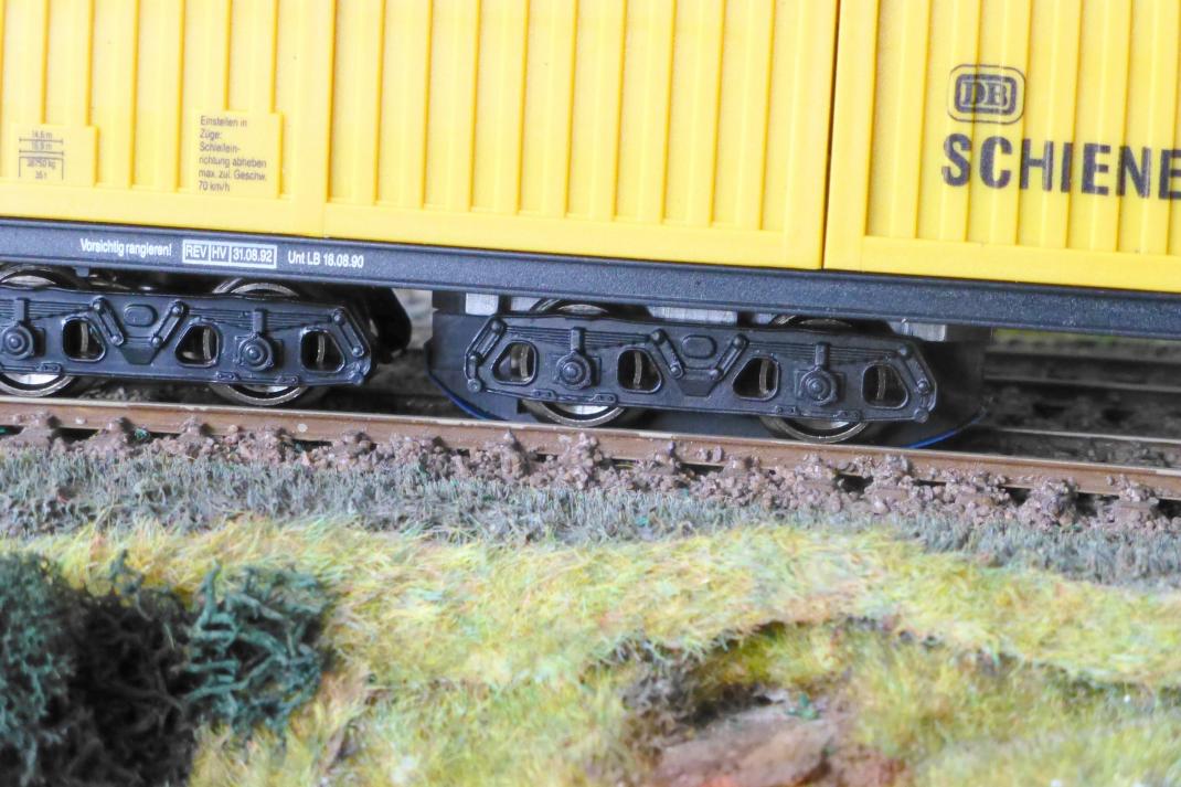 Durch den Einbau der innovativen und zuverlässigen Reinigungstechnik in ein Schienenfahrzeug können auch besonders unzugängliche Stellen Ihrer Modellanlage wie Tunnelstrecken, Schattenbahnhöfe und fahrdrahtüberspannte Gleisanlagen problemlos gereinigt werden. Die wartungfreien Betriebszeiten Ihrer Schienenfahrzeuge werden deutlich erhöht und eine sichere Stromabnahme von dem Mittelleiter wird erreicht. Der vollfunktionstüchtige und fahrbare Mittelleiterreinigungswagen wird über die Fahrspannung mit Strom versorgt und kann von handelsüblichen Triebfahrzeugen gezogen oder geschoben werden. Er besitzt keinen Antrieb zur Fortbewegung.
